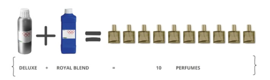 Solo necesitas mezclar tu fragancia concentrada DELUXE o EXCLUSIF con RoyalBlend… ¡y listo! Tendrás perfumes increíbles a precios accesibles.